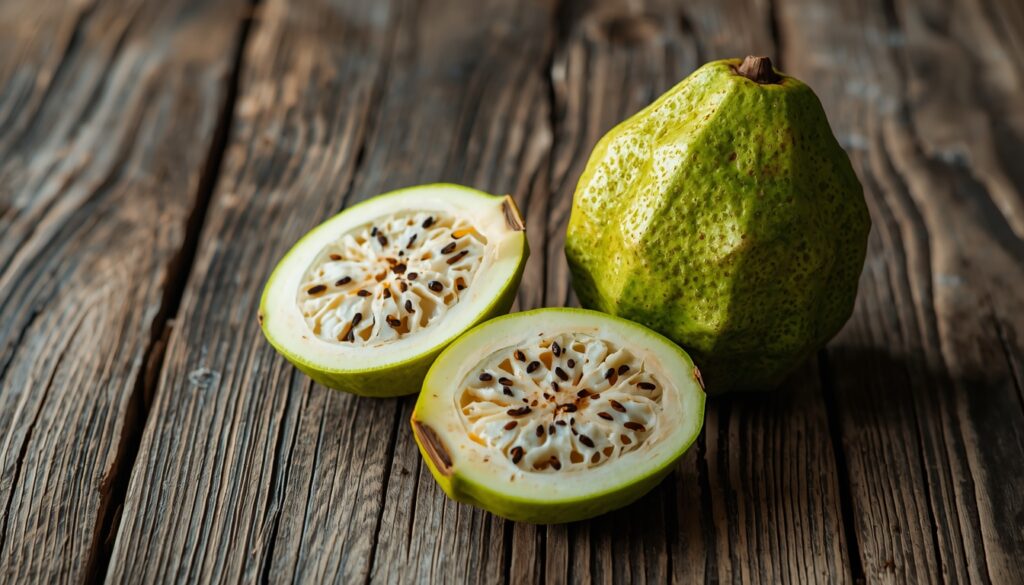 Cherimoya shines with benefits like top-notch fiber for digestion, antioxidants for cell protection, and potassium for heart care. Don’t forget its vitamin C for immunity and B6 for mood lifts. This fruit packs a nutrient wallop in every creamy bite. To get the most, pick ones that yield slightly to thumb pressure—ripe but firm. Cherimoya Fruit Health Benefits