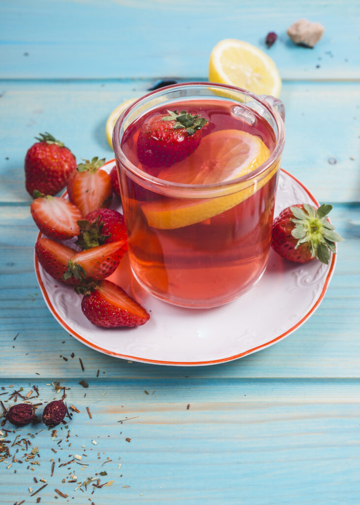 Strawberry tea is also hydrating and can be used for strawberry tea for hydration, as well as flushing the body of toxins. Strawberry tea has natural mild diuretic properties making it a suitable premium natural detox tea. The nutrients in strawberry tea also help as strawberry tea for immunity and strengthens the body’s overall immune defense.Strawberry Tea Benefits